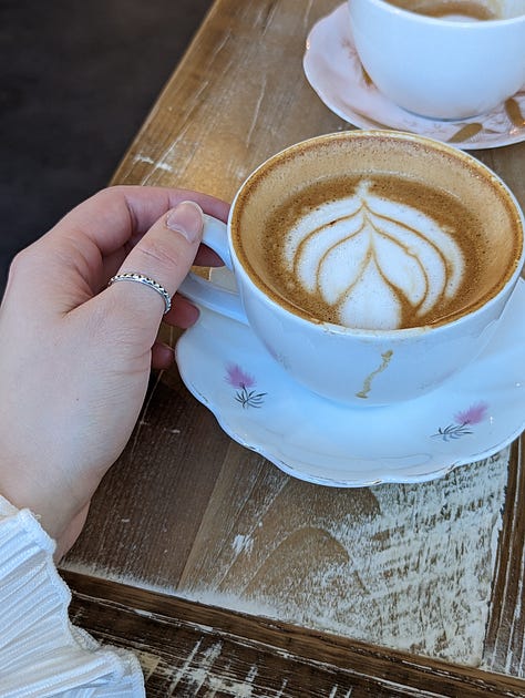 I love sinking into a cafe couch with my drink and a good book, or friend to chat with.